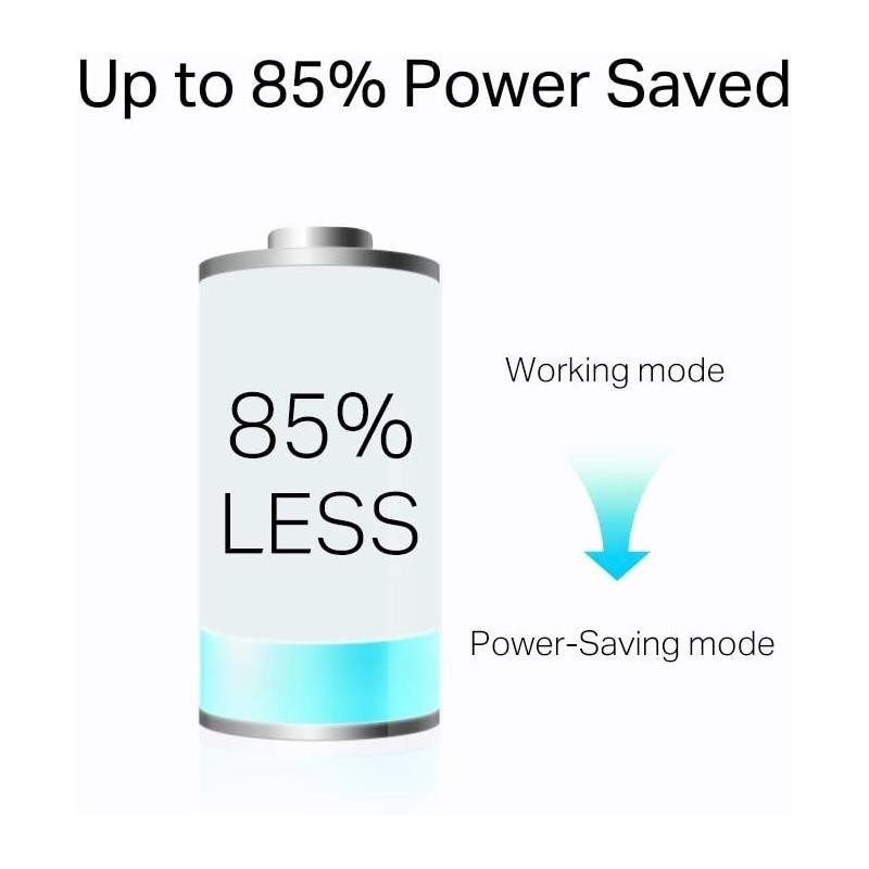 Ahorro energético de hasta 85%: El futuro parece verde para los adaptadores de línea eléctrica. El diseño práctico y el sofisticado modo de ahorro de energía del TL-PA7017P KIT, que cambia automáticamente de su modo normal de "Trabajo" al modo "Ahorro de energía", reduce su consumo de energía hasta en un 85%.