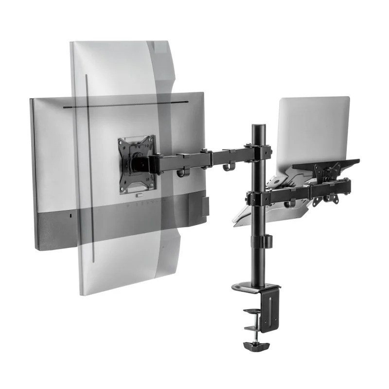 Contenido del paquete: 1 x Soporte de mesa para portátil y monitor/TV 1 x Kit de montaje (No incluye herramientas) 1 x Manual de instrucciones multi idioma