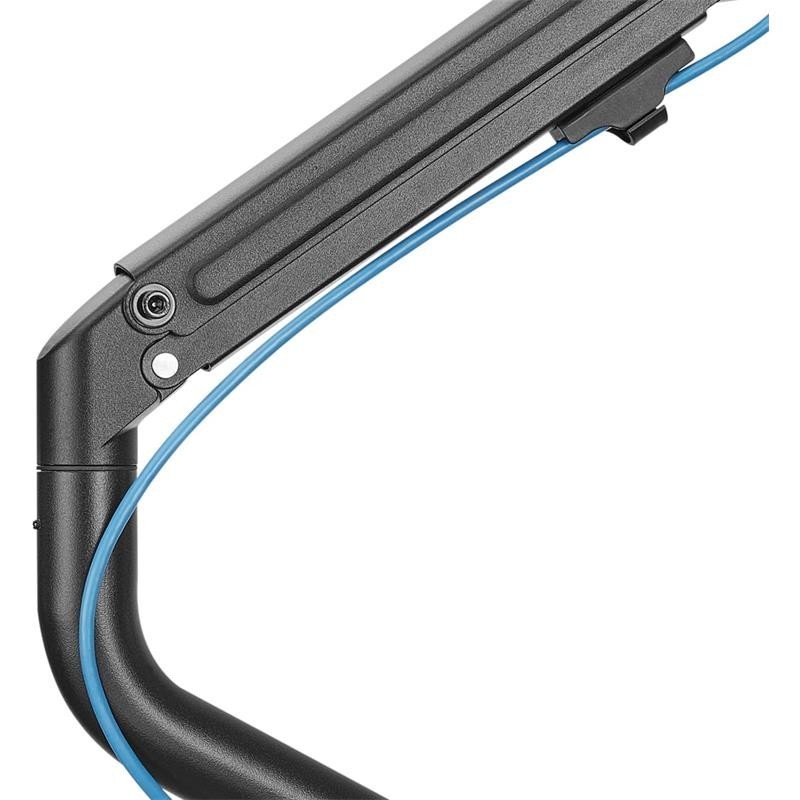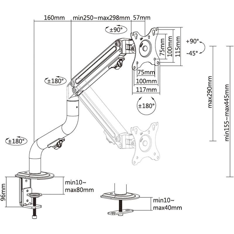 Soporte de mesa Eco Aisens contrapesogiratorio e inclinable para monitor/TV de 3 pivotes y 1 brazo fabricado con acero de alta resistencia y pintado con pintura electrostática para un acabado perfecto. Se permite la instalación en la mesa a través de abrazadera o de tornillo pasante.