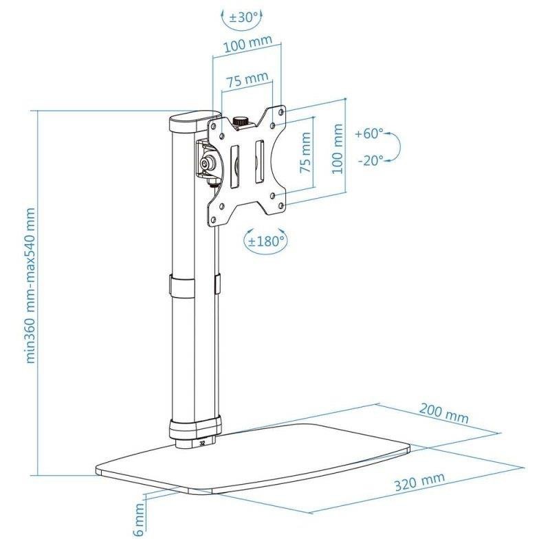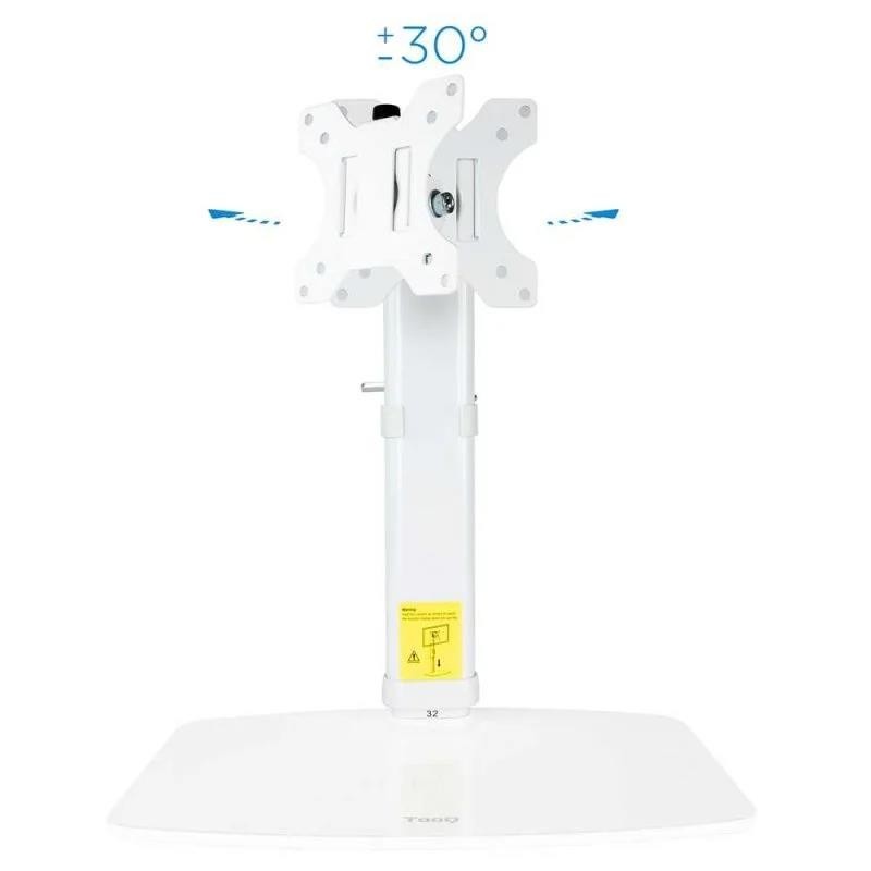 El soporte de mesa giratorio e inclinable DB4032TNR-W de TOOQ es un accesorio ideal para pantallas de 17 a 27 pulgadas. Con un brazo ajustable y regulable con mecanismo asistido por muelles, permite ajustar el ángulo de visión de la pantalla para optimizar la experiencia de visualización.