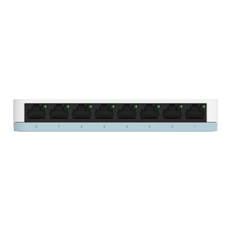 D-Link DGS-1008D/E. Tipo de interruptor: No administrado. Puertos tipo básico de conmutación RJ-45 Ethernet: Gigabit Ethernet (10/100/1000), Cantidad de puertos básicos de conmutación RJ-45 Ethernet: 8. Bidireccional completo (Full duplex). Tabla de direcciones MAC: 4000 entradas, Capacidad de conmutación: 16 Gbit/s. Estándares de red: IEEE 802.1p, IEEE 802.3, IEEE 802.3ab, IEEE 802.3az, IEEE 802.3u. Voltaje de entrada DC: 5 V