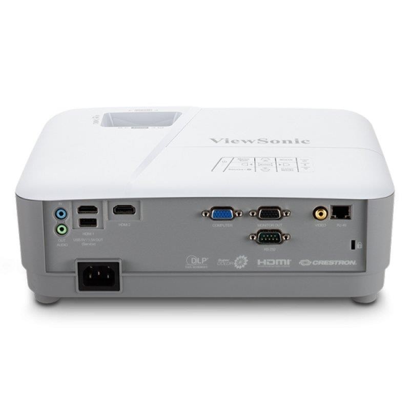 Monitoreo y control de red: El administrador de TI puede supervisar, programar y administrar el proyector de manera remota, y recibir alertas de estado del proyector con el sistema e-Control? y el software de gestión RoomView Express? integrados de Creston®. Gracias a que este proyector cuenta con certificación Crestron® y AMX®, el administrador de TI puede controlar y supervisar el proyector para campus o empresas de todos los tamaños.