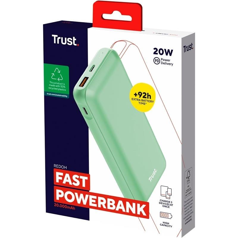Redoh no es una batería externa cualquiera. Dotada con una Power Delivery de 20 W, carga dispositivos más rápidamente que una batería externa normal y también se puede autocargar más rápidamente. ¡No más esperas!
