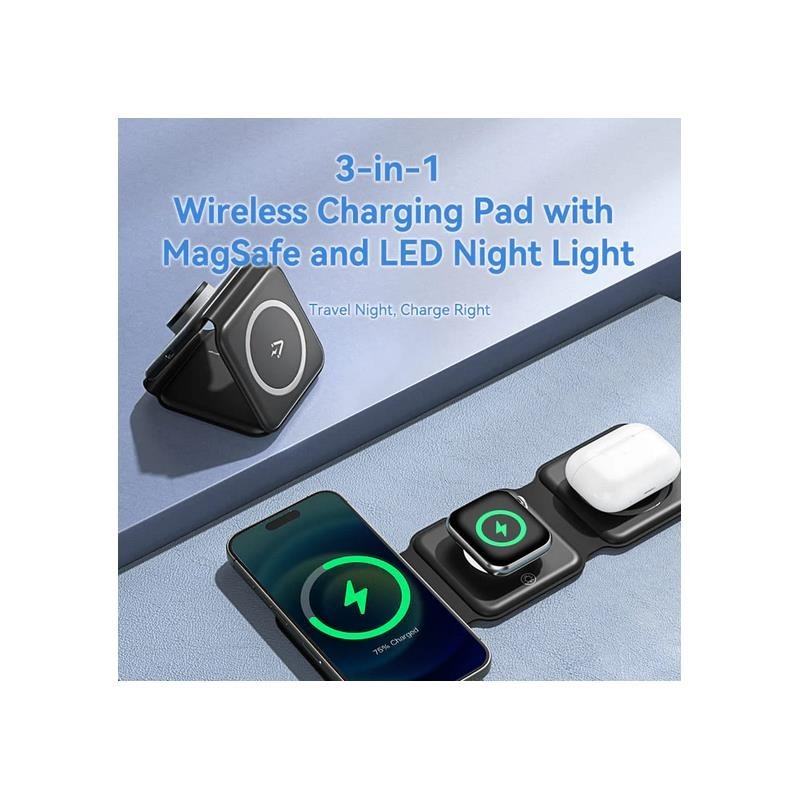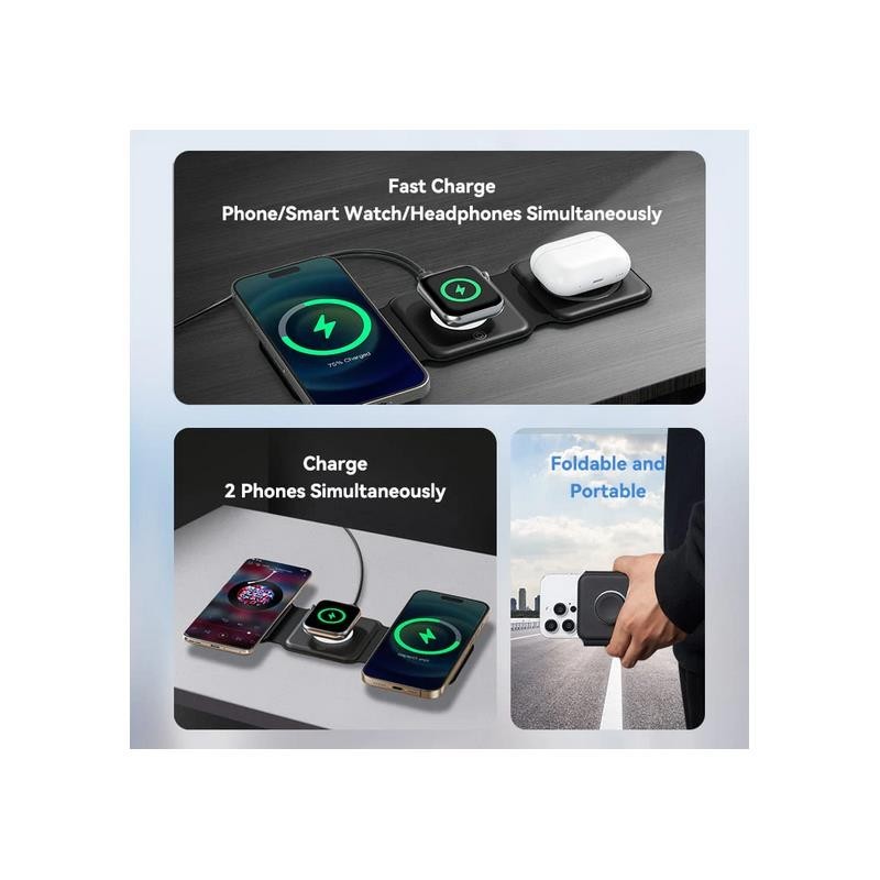 Carga simultánea: Permite cargar al mismo tiempo un iPhone, un Apple Watch y unos AirPods.