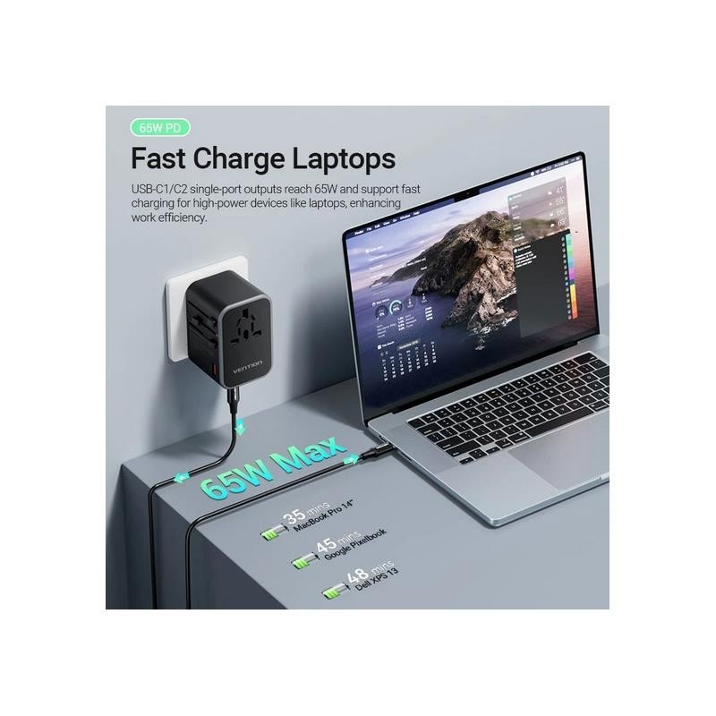 Carga rápida PD 65W y QC 30W: Suficiente para cargar laptops, tablets y smartphones de forma eficiente.